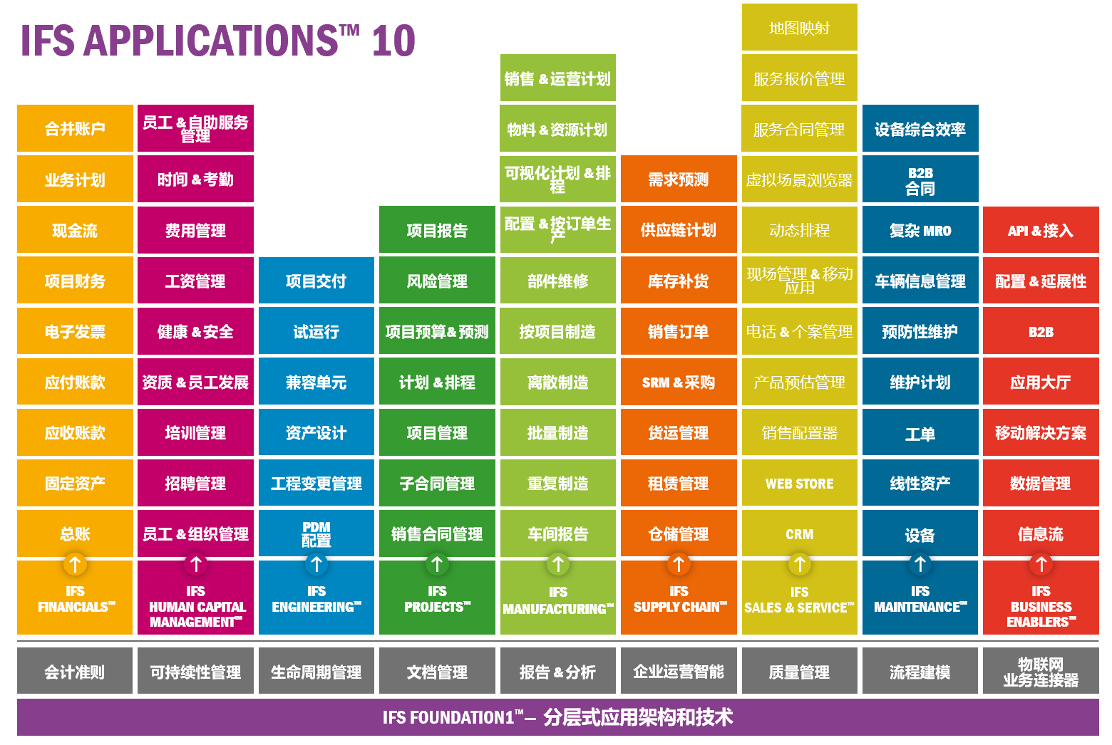IFS应用程序旨在优化当今的运营,以实现现在和将来更好的结果。无论您的业务是资产密集型,以产品为中心还是以服务为中心,IFS应用程序都可以按照您的方式工作。完美的解决方案和出色的用户体验可帮助您更好地为客户服务,吸引员工并在竞争中脱颖而出。